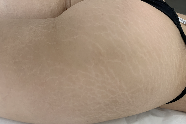 Stretch mark camouflage is a paramedical tattooing technique that uses skin‑tone pigments to blend stretch marks with the surrounding skin, making them less noticeable. The pigments are implanted into the upper dermis to match natural skin color, compensating for the lighter or discolored appearance of mature stretch marks.